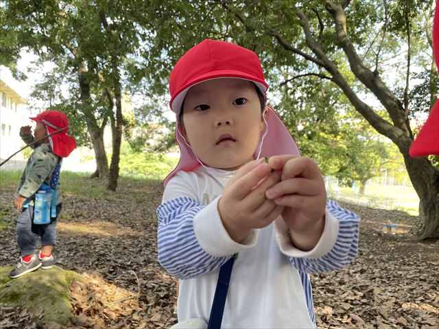 小さな手に広がる自然の恵みに、季節の移り変わりを感じているようでした(*^^*)