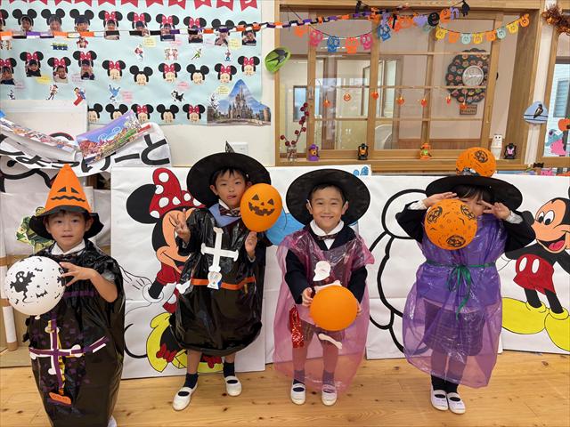 今日は、仮装をして写真撮影やダンス、スタンプ宝探しをしましたよ(*^^*)