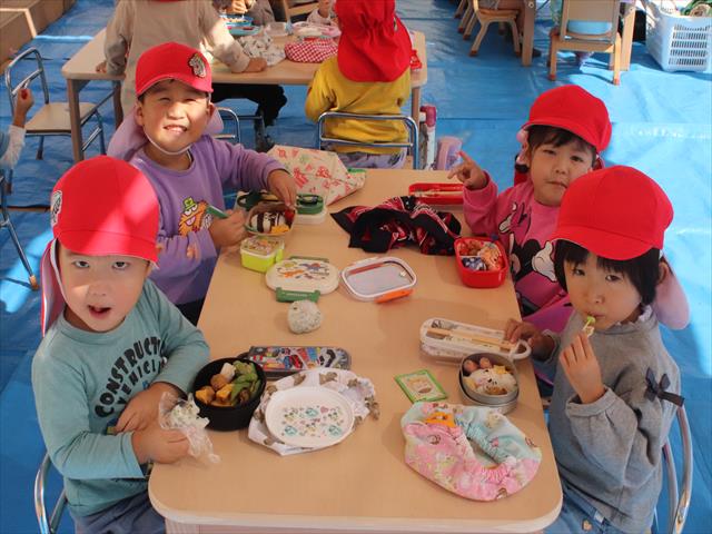 子ども達はおうちの人が作ってくれたお弁当を嬉しそうに見せてくれました(^v^)