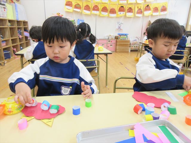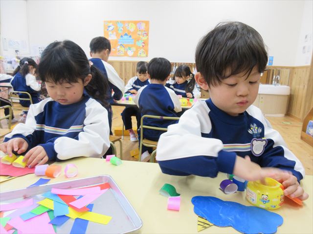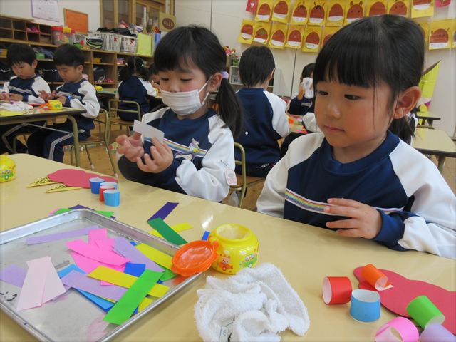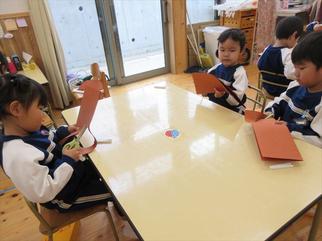 節分集会後に持ち帰る予定なので、出来上がりはぜひお楽しみに...☆