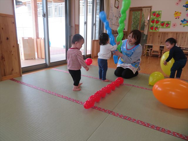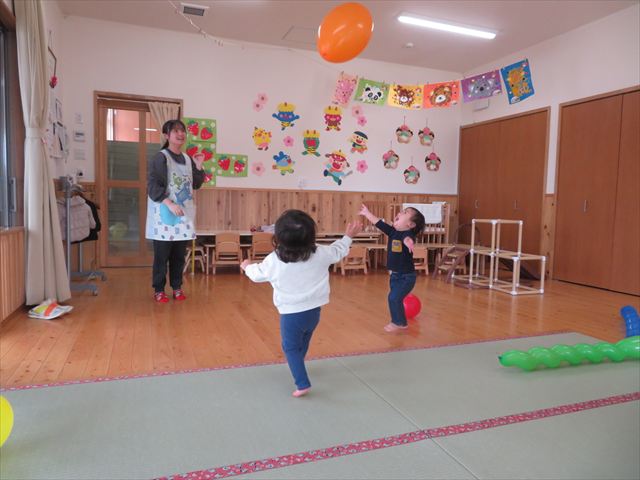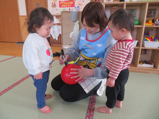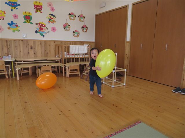 風船を触ってみたり、上へ投げてみたりと思い思いに楽しんでいましたよ!!