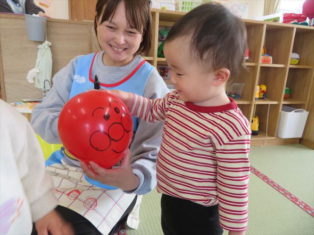 準備していると、「ふうせん!ふうせん!」と言って膨らむのを待っていた子どもたち!