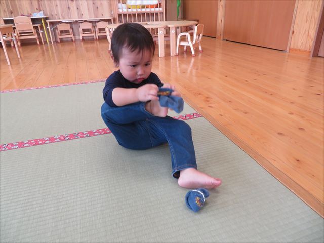 最近では、靴下や靴を自分で履こうとする様子も見られるようになってきました(^▽^)/