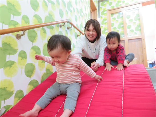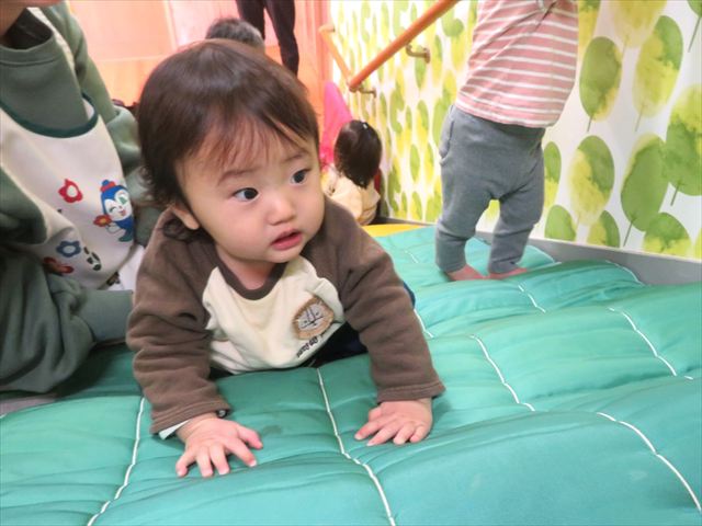 階段にマットを準備している時から待ち遠しそうにしていた子ども達。