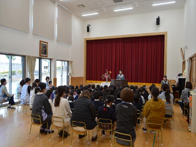 式の中では、園長先生からのお話や春休みの過ごし方について、