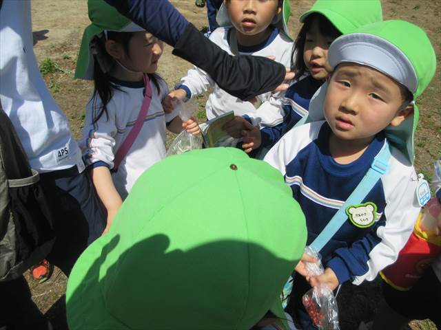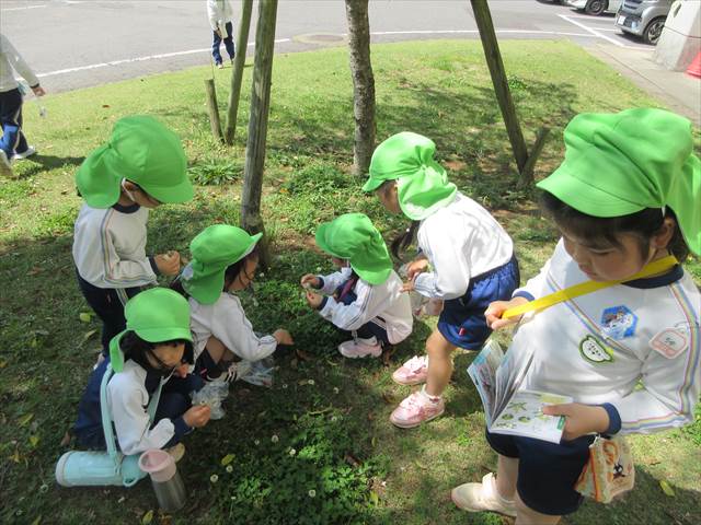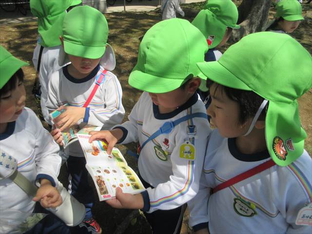ミニ図鑑を持って行ったので、草花や虫に出会うと図鑑を広げて、「○○なんじゃない??」と話し合う子ども達。「調べることは大切だ〜!」と言う子もいました(^-^)
