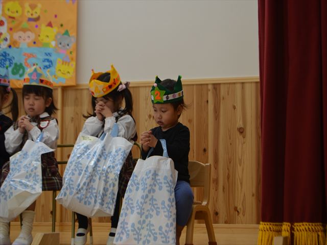体調が優れず、残念ながら今日のお誕生会に参加できなかったお友達のことも想い、インタビューを代わりに読んだり、お家の方からいただいていた温かなメッセージを紹介しました。元気になって幼稚園に来てくれた際には皆で「おめでとう!」と伝えようと思います(^O^)
