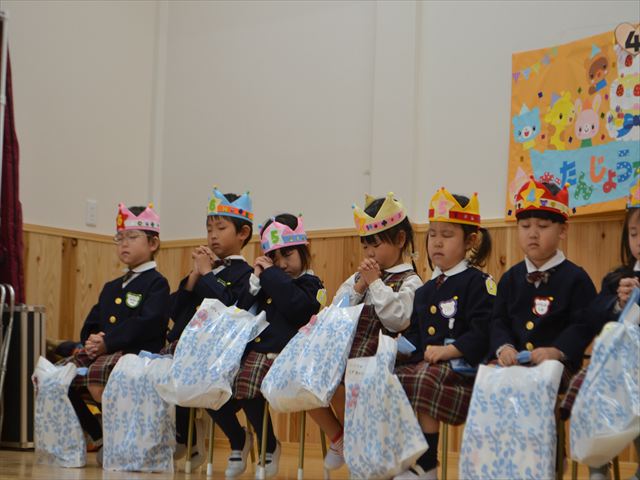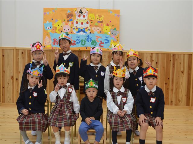 幼稚園のみんなで、4月生まれのお友だち11名のお祝いをしましたよ☆