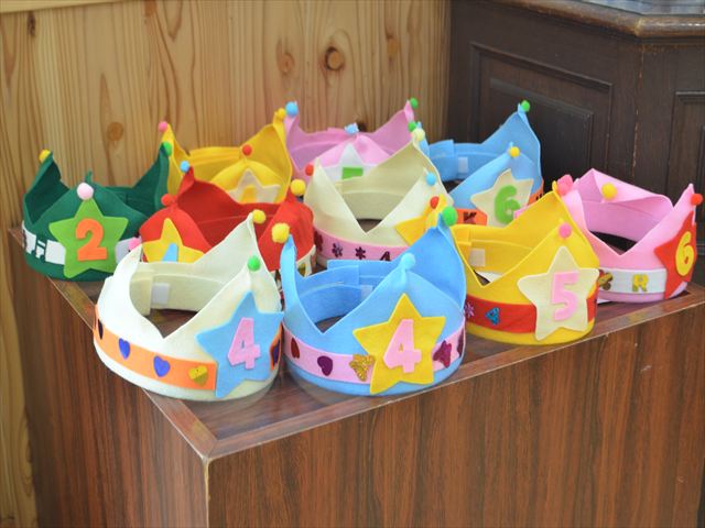 冠は子どもたちが、それぞれ飾り付けをしてくれました!思い思いの素敵な冠が完成しましたよ!