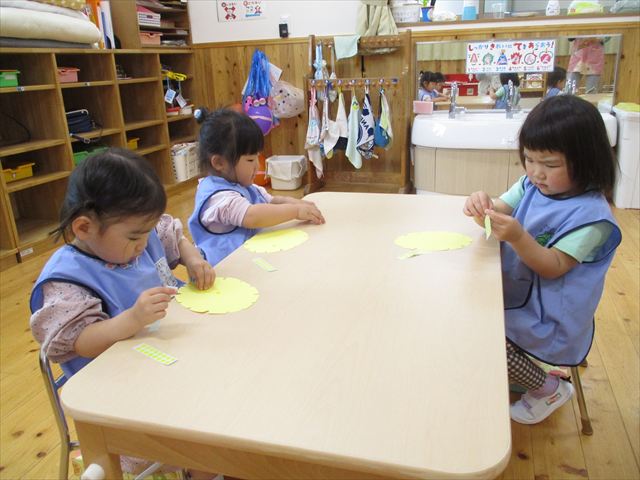 ○印をよく見て、線に合わせて上手に貼っていましたよ!