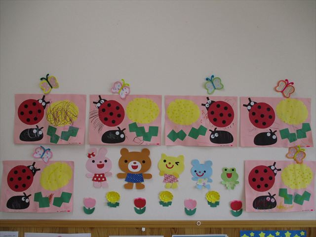 今月は、お散歩で沢山見つけた「タンポポ・てんとう虫・ダンゴ虫」の制作です。
